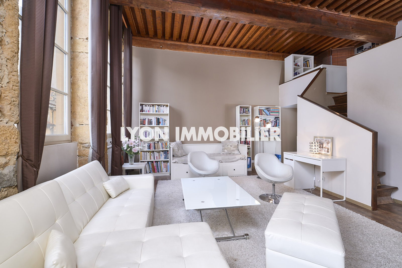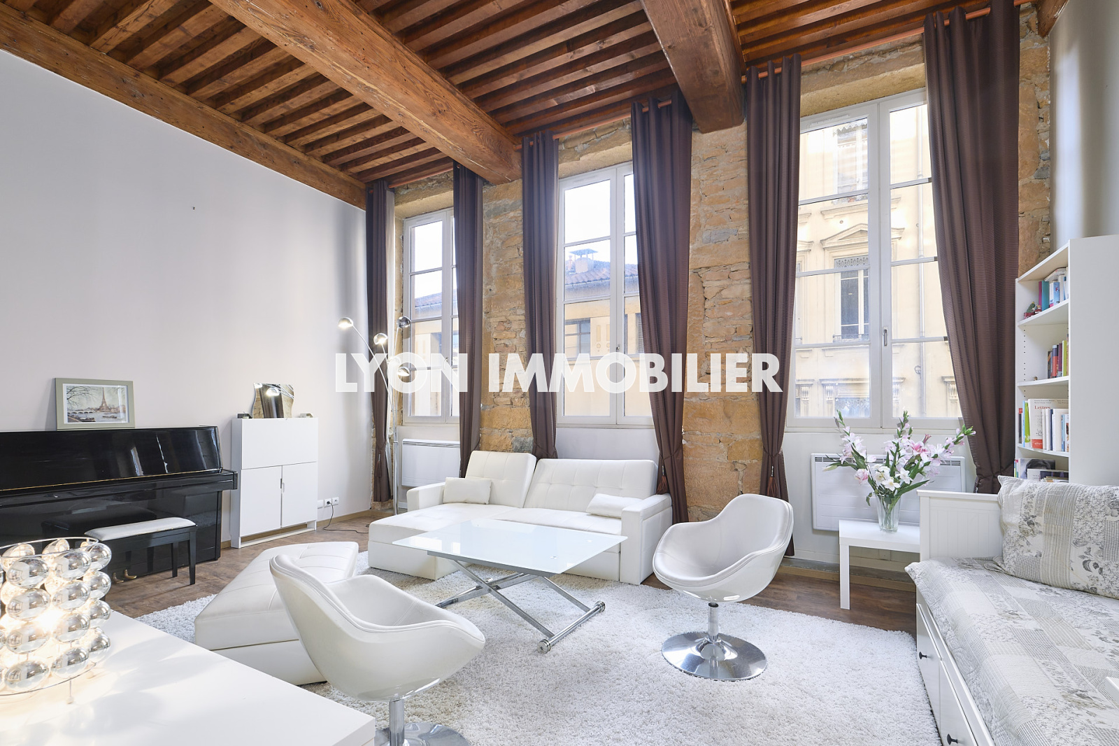 Lyon Immobilier vous propose en exclusivité ce bel appartement canut de 56 m2 - 42 m2 carrez lumineux - 1er étage